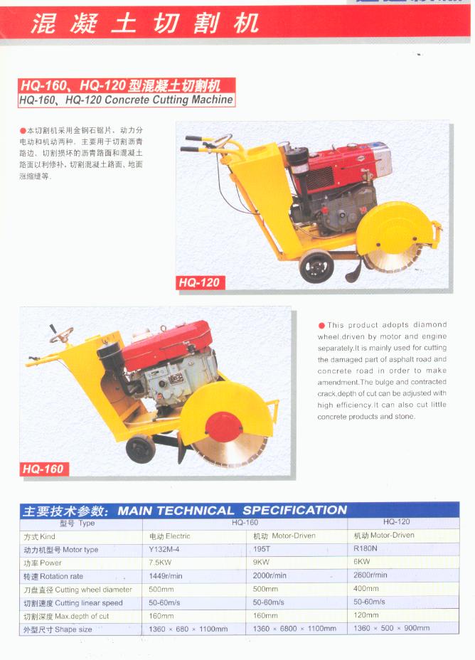 This product adopts diamond wheel, driven by motor and engine separately. It is mainly used for cutting the damaged part of asphalt road and concrete road in order to make amendment. The bulge and contracted crack, depth of cut can be adjusted with high efficiency. It can also cut little concrete products and stone.
